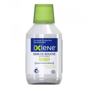 Le bain de bouche Ixiène assure une hygiène protectrice bio durable. Le bain de bouche Ixiène a été formulé pour respecter la flore buccale. Sans alcool, le bain de bouche Ixiène respecte les gencives sensibles, et nirrite pas les muqueuses. Laction anti microbienne du bain de bouche Ixiène, est particulièrement efficace contre le candidat albicans, responsable des carries. Garantie Ecocert, sans allergènes, sans pétrochimie, le bain de bouche Ixiène convient parfaitement aux personnes sensibles. Le bouchon doseur permet un dosage précis de votre bain de bouche. Sans alcool Sans rinçage Respecte la flore buccale Respecte les gencives sensibles Préserve des risques de contamination Purifie lhaleine Économique : 50 bains de bouche Grande naturalité 100% actifs naturels