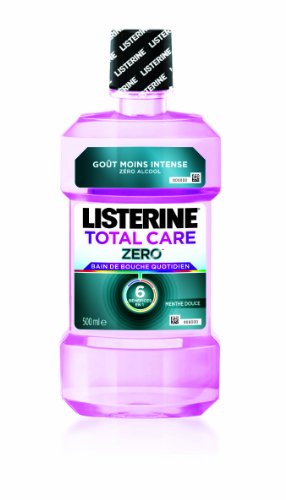 LISTERINE TOTAL CARE ZEROPROPRIETES:TOTAL CARE ZERO de LISTERINE est un bain de bouche conçu pour l'hygiène bucco dentaire.Il offre six bénéfices en compléments du brossage. Sans alcool, TOTAL CARE ZERO lutte contre la plaque dentaire tout en rafraîchissant votre haleine.Ce bain de bouche stimule l'émail de vos dents, contribue à la santé de vos gencives. Il combat les bactéries responsables empêche la formation de tartre.CONSEILS D'UTILISATION:Faites un gargarisme avec TOTAL CARE ZERO 30 secondes 2 fois par jour, après un brossage soigneux de vos dents.20 ml par prise, l'équivalent de 4 cuillères à café.Utilisez 10ml pour les enfants âgés de 6 à 12 ans.Ce produit s'utilise pur, ne s'avale pas et ne convient pas aux enfants moins de 6 ans.COMPOSITION:extraits d'huiles essentielles: Thymol, Eucalyptol, Menthol, Salicylate de méthyle, fluor, Chlorure de Zinc.