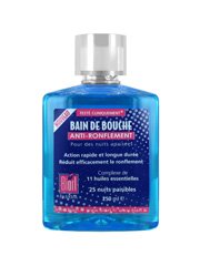 Biorl Pharma Bain de Bouche Anti-Ronflement 250 ml agit rapidement et longuement pour réduire efficacement le ronflement.Ce complexe aux 11 huiles essentielles agit pour lubrifier et tonifier les tissus du fond de la gorge, responsables du phénomène de ronflement, tout en permettant de garder l'haleine fraîche.71% des personnes ayant testé le bain de bouche pendant 14 jours ont remarqué une réduction significative du ronflement.Ce flacon va vous permettre de passer environ 25 nuits paisibles.